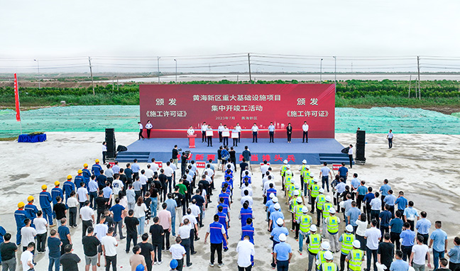 集團(tuán)領(lǐng)導(dǎo)參加黃海新區(qū)重大基礎(chǔ)設(shè)施項(xiàng)目集中開(kāi)工及竣工儀式