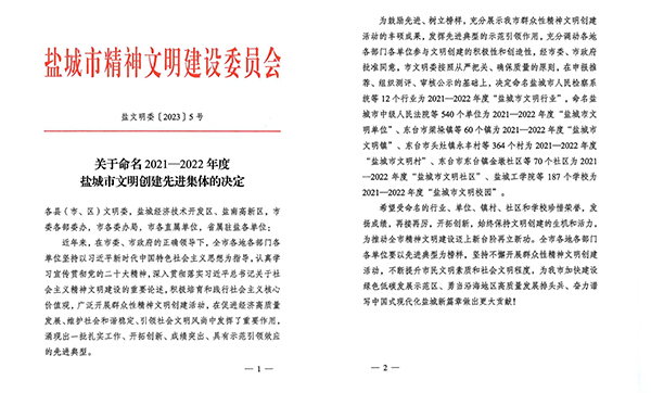 喜報(bào)!海興集團(tuán)榮獲“鹽城市文明單位”稱(chēng)號(hào)